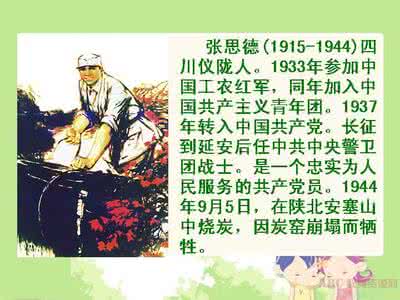我們的共產黨和共產黨所領導的八路軍、新四軍,是革命的隊伍。我們這個隊伍完全是為著解放人民的,是徹底地為人民的利益工作的。張思德同志就是我們這個隊伍中的一個同志。