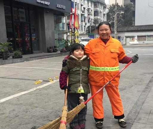 呂大姐是名環(huán)衛(wèi)工人,來成都掃地還不到1年。今年過年由于她不能放假,在鄉(xiāng)下的兒女帶著孫子來成都陪她過新年。孫女看奶奶辛苦,堅持要幫她一起掃地,“我?guī)湍棠淘琰c掃完,她就可以回家和我們一起團(tuán)年了。”胡夢在新年里只有這個小小的心愿。